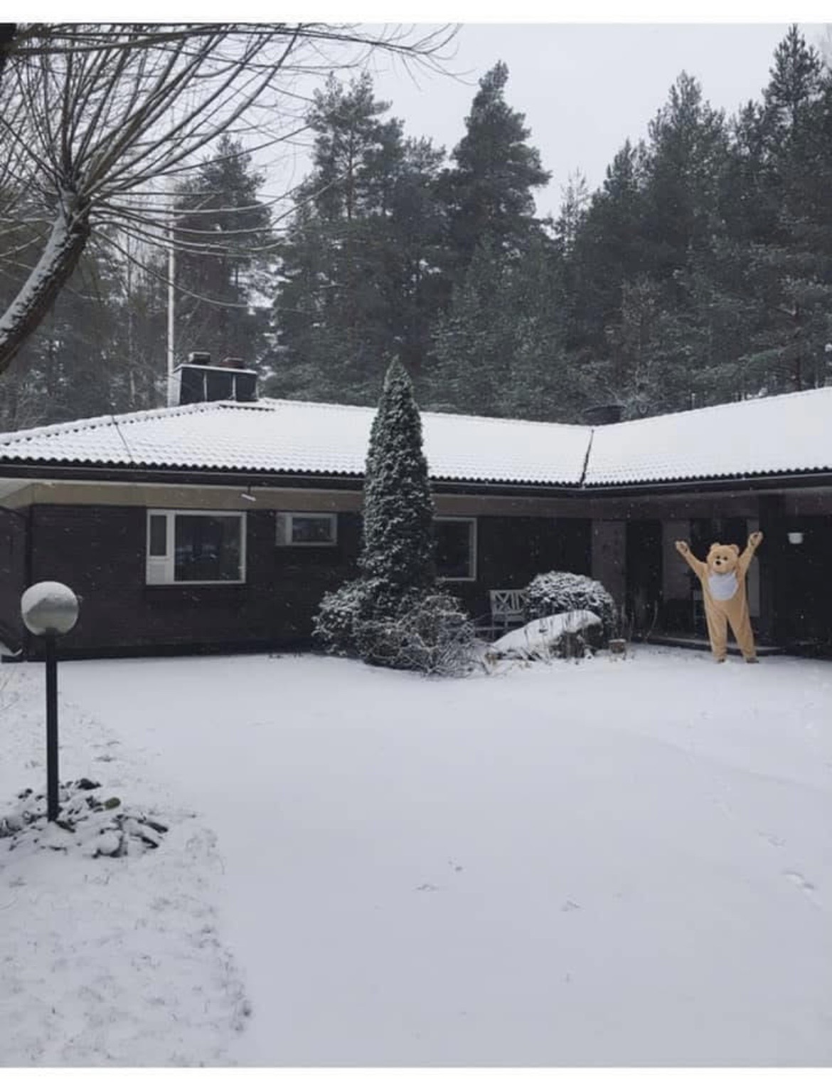 Kuvassa Hermannikoti ja Karhunen, joka toivottaa tervetulleeksi kaikki lapset.